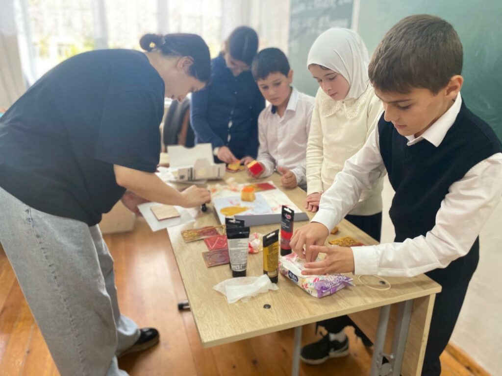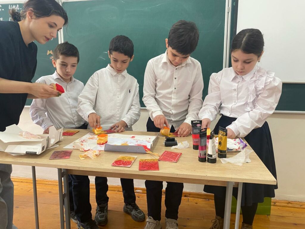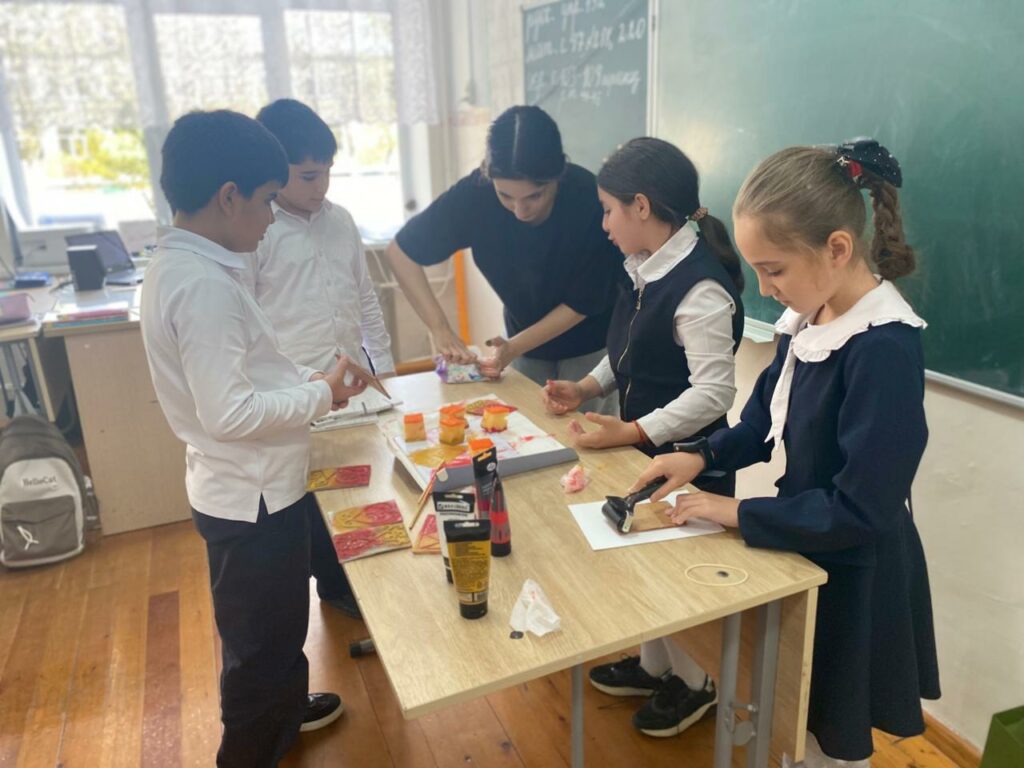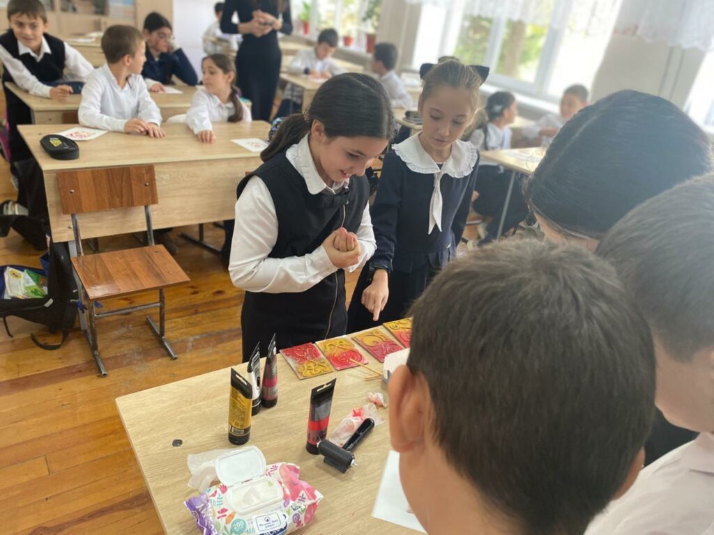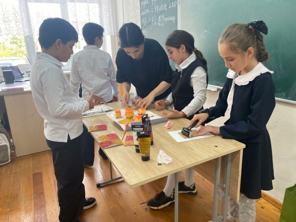 Сегодня, в Каспийском лицее № 8 традиционный урок музыки в 4 классе был заменен необычным мастер-классом по технике высокой печати. И это оказалось невероятно увлекательным приключением для ребят!