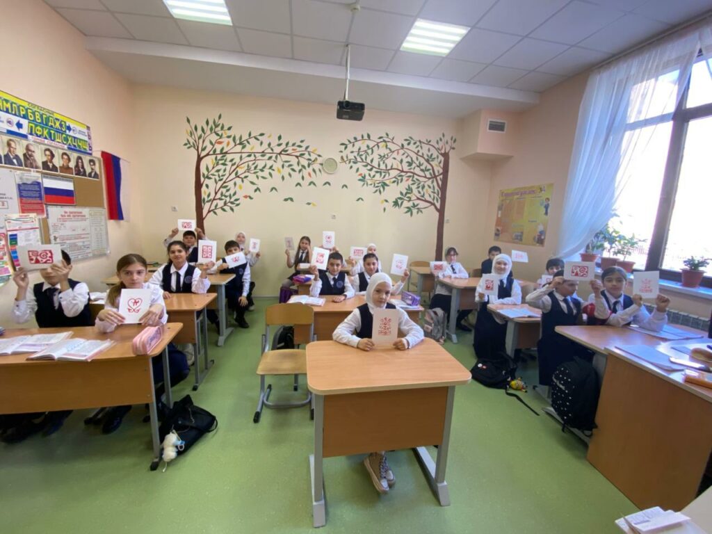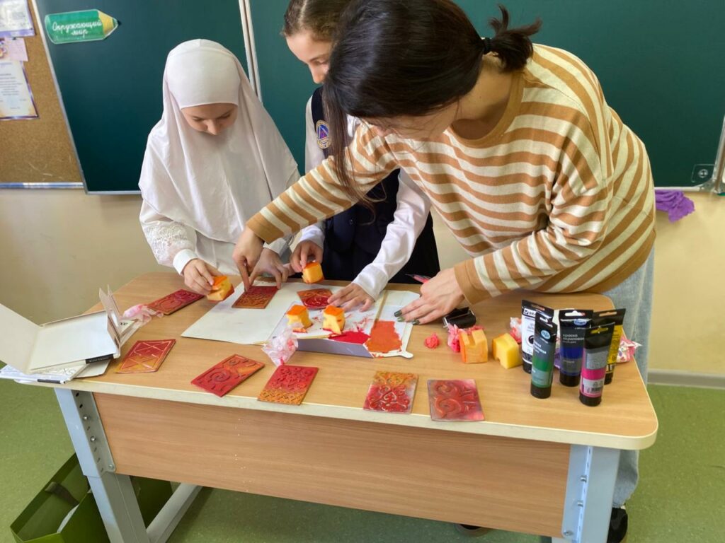 Сегодня один из 4-х классов Гимназии № 12 им. А. Аджиева не просто учился – он оставлял следы. Под руководством специалиста Центра традиционной культуры, Умай Ахмедовой, ребята погрузились в мир высокой печати.