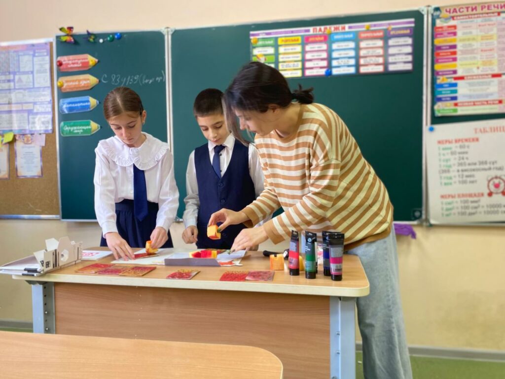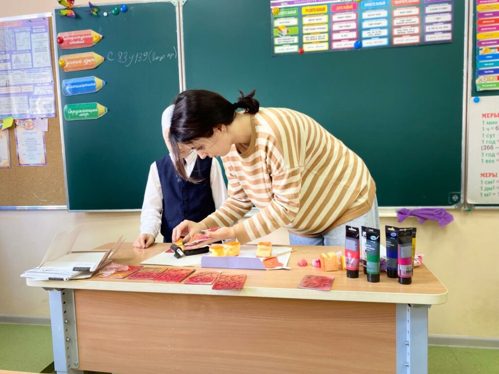 Вместо обычных задач – бумага, краска и хруст ручного ролика. Каждый оттиск стал уникальным посланием, запечатленным моментом. Необычный урок, оставшийся на память.